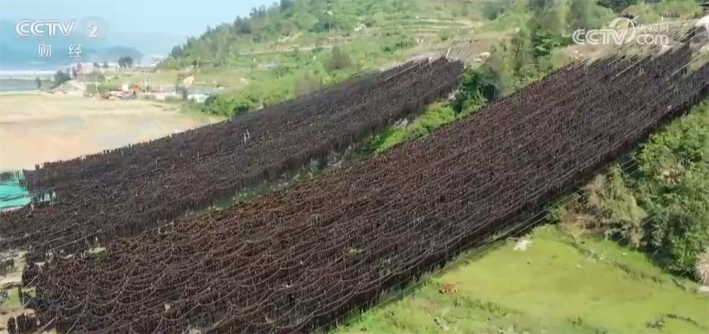 福建宁德的霞浦县是我国海带的从产区之一。这几天,这里的15万亩海带送来丰收季,养殖户们把海带收成上岸,再运送到晾晒场晾晒,构成了奇特的“空中晒场”景不雅。